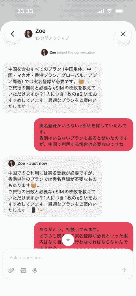 海外でeSIMの設定が上手くいかず、こちらの会社の問い合わせ窓口(メールのみのようでした)にメールで質問しても返信すらありません。