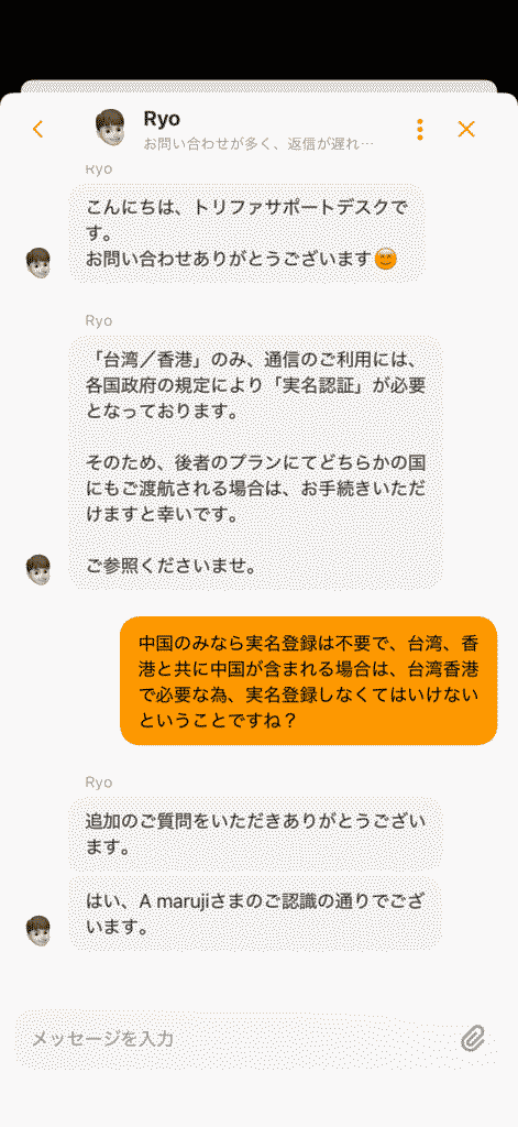 トリファのサポートは日本人が有人対応
